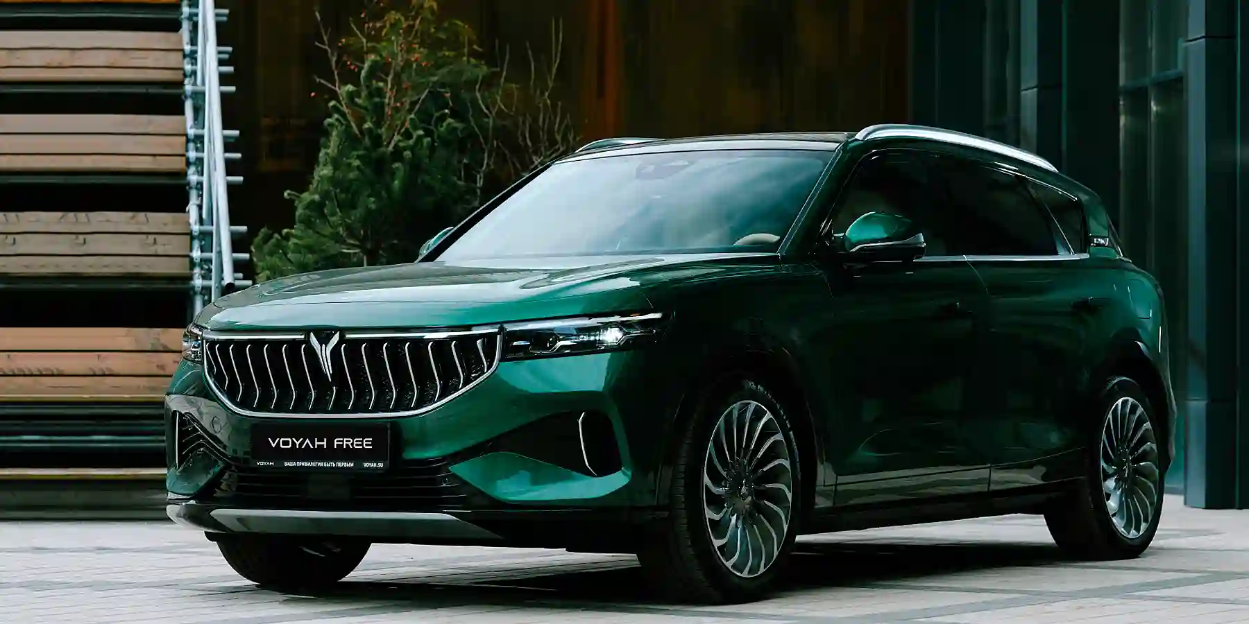 Во двор бесшумно, едва шелестя шинами, вплывает изумрудный красавец. Немногочисленные прохожие и мы со съемочной командой синхронно поворачиваем головы в его сторону и внимательно рассматриваем. VOYAH FREE — так называется этот электрокар — на московских дорогах выглядит как очень дерзкий новичок, непременно обращающий на себя внимание.